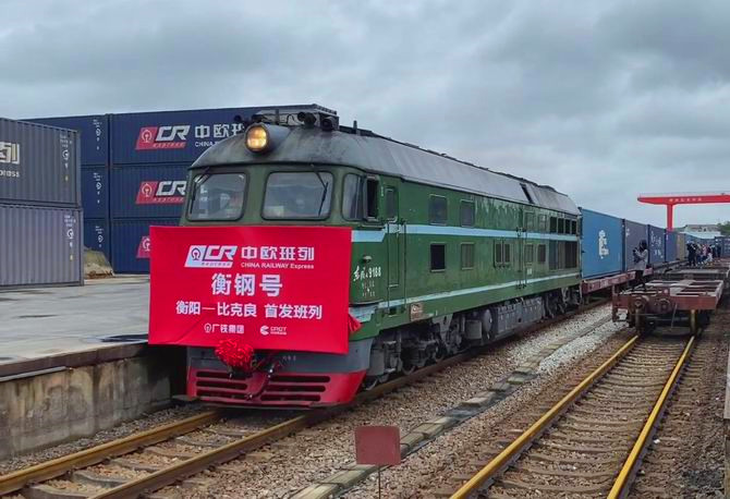 2020年10月15日上午,中歐班列“衡陽——比克良”首發(fā)式在鐵路衡陽南站舉行,標(biāo)志著衡陽首次開通至歐洲國家的鐵路國際物流通道。湖南省人民政府副秘書長陳獻(xiàn)春出席啟動儀式并宣布衡陽首列中歐班列發(fā)車。衡陽市委書記鄧群策致辭,湖南省商務(wù)廳、長沙海關(guān)、中國鐵路金華局集團(tuán)、華菱衡鋼相關(guān)領(lǐng)導(dǎo)出席活動。(中歐班列“衡陽——比克良”首發(fā)列車國際班列首發(fā)式在鐵路衡陽南站舉行)